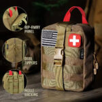 【MOLLE EMT POUCH, DURABLE, PORTABLE, AND WATER-RESISTANT】 The bag was made from 1000D water-resistant nylon, offering three large compartments and many straps to organize your supplies. The overall dimension of the kit is 8″ x 6.5″ x 5″. The kit can be attached to any molle system: backpack, vest, vehicle molle panel.
