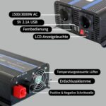 SAFE FOR USE – Built in LCD display for load estimation, battery capacity/voltage monitor, and trouble shooting code. LED indicator for low/over voltage protection, over-temperature protection, over-load protection, and short circuit indication. Cooling fans and ground-fault circuit interrupter (GFCI) protection.
