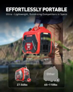 Stay powered anywhere with this compact, fuel-efficient inverter generator—perfect for road trips, backyard projects, and emergency use. At just 27.56 lbs, it’s easy to carry and store.