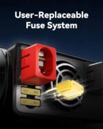 6-Fold Intelligent Safety Protection– Built-in safeguards include undervoltage, overvoltage, overload, over-temperature, short circuit, and reverse polarity protection via fuse. The temperature-controlled cooling fan activates only when necessary, keeping the unit quiet and cool while extending the lifespan of connected devices such as routers, LED lights, and speakers.