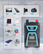 The Newly Upgraded Compact Inverter– The Erayak TANK1000 Power Inverter delivers 1000W continuous and 2000W peak surge power from 12V DC to 115V AC. With high-frequency conversion technology and pure copper terminal cables, it provides efficient, safe, and stable performance. Compact yet powerful, it features 2×110V AC outlets, 1×USB-A, and 1×USB-C fast charging port (3.1A shared), ideal for phones, laptops, lights, and small appliances on the go.