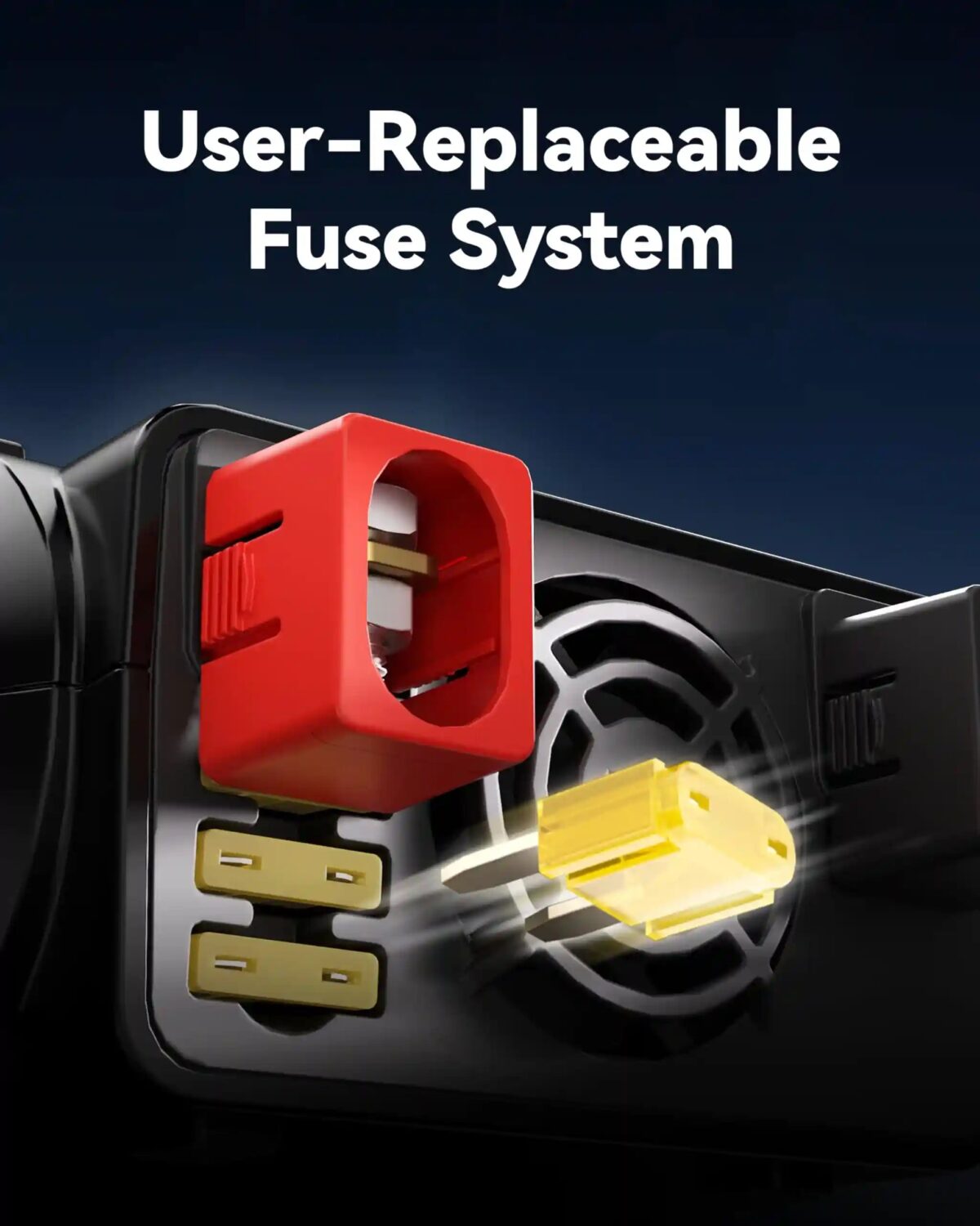 6-Fold Intelligent Safety Protection– Built-in safeguards include undervoltage, overvoltage, overload, over-temperature, short circuit, and reverse polarity protection via fuse. The temperature-controlled cooling fan activates only when necessary, keeping the unit quiet and cool while extending the lifespan of connected devices such as routers, LED lights, and speakers.
