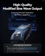 Smart Display & Remote Control – The LCD screen provides real-time battery voltage, output wattage, and fault warnings. With the included wired remote switch, you can conveniently power the inverter on/off from inside your RV or vehicle cabin.
