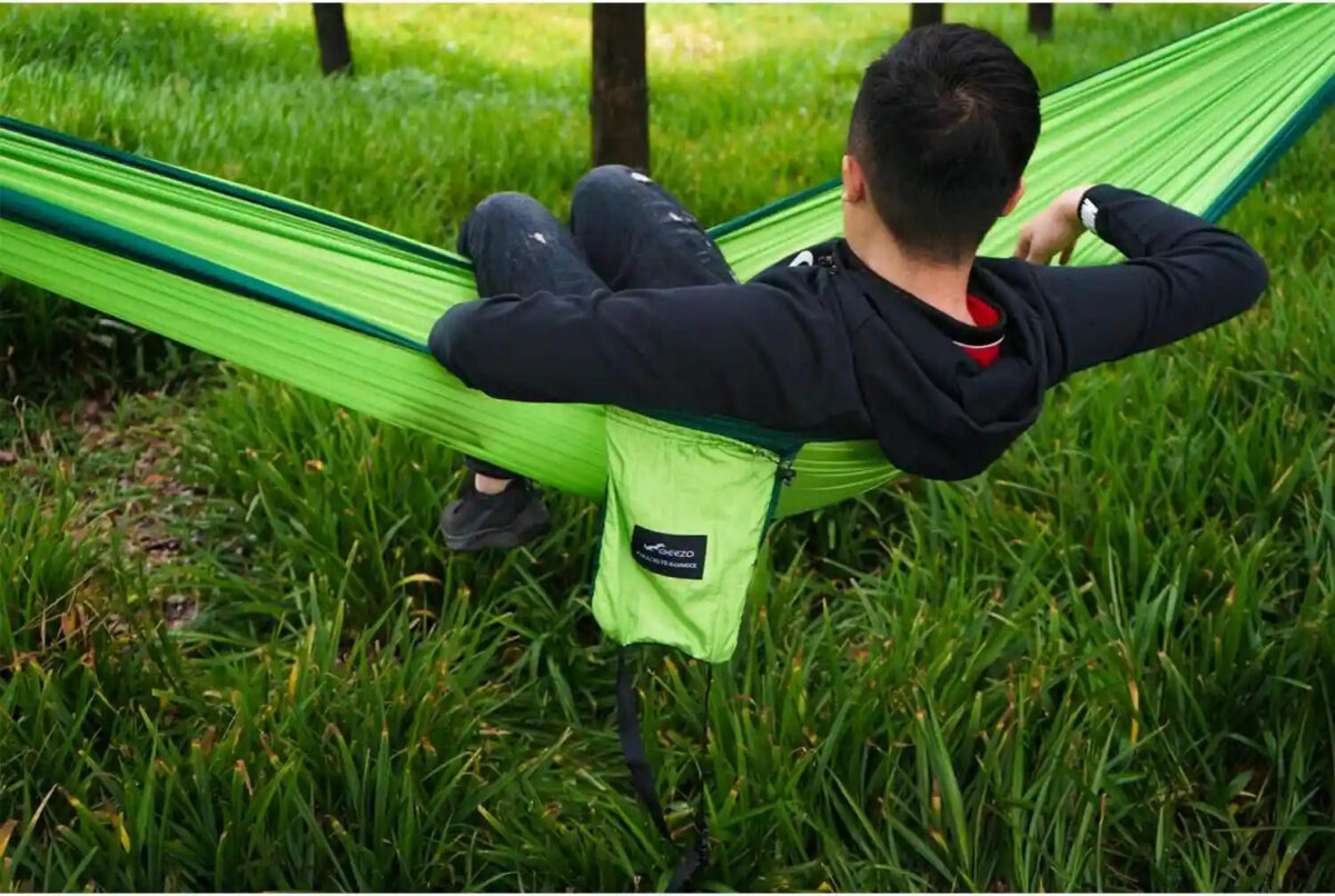 GEEZO Double Camping Hammock, Lightweight Portable Parachute (2 Tree Straps 16 LOOPS/10 FT Included) 500Lbs Capacity Hammock for Backpacking, Camping, Travel, Beach, Garden