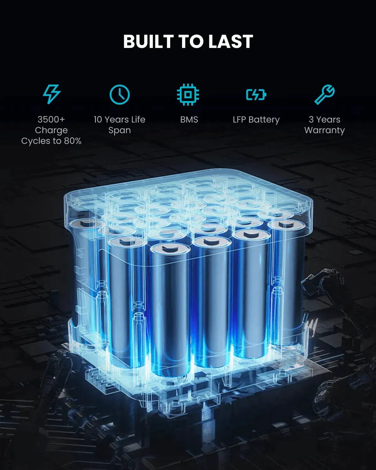 LiFePO4 Battery with 3,500+ Life Cycles to 80%