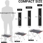 Lightweight & Portable: There’s nowhere you can’t go with camping tables that fold up lightweight, which weighs a mere (S: 1.98lbs M: 2.87lbs L: 3.75lbs) and can be folded into (S:15.75*5.5*2.4inch M: 22*5.9*2.4inch L: 27.5*5.9*2.75inch), max load up to 55lbs. You can store it in backpacks, cars, canoes, river rafts, motorcycle rear seats and more without a thought.
